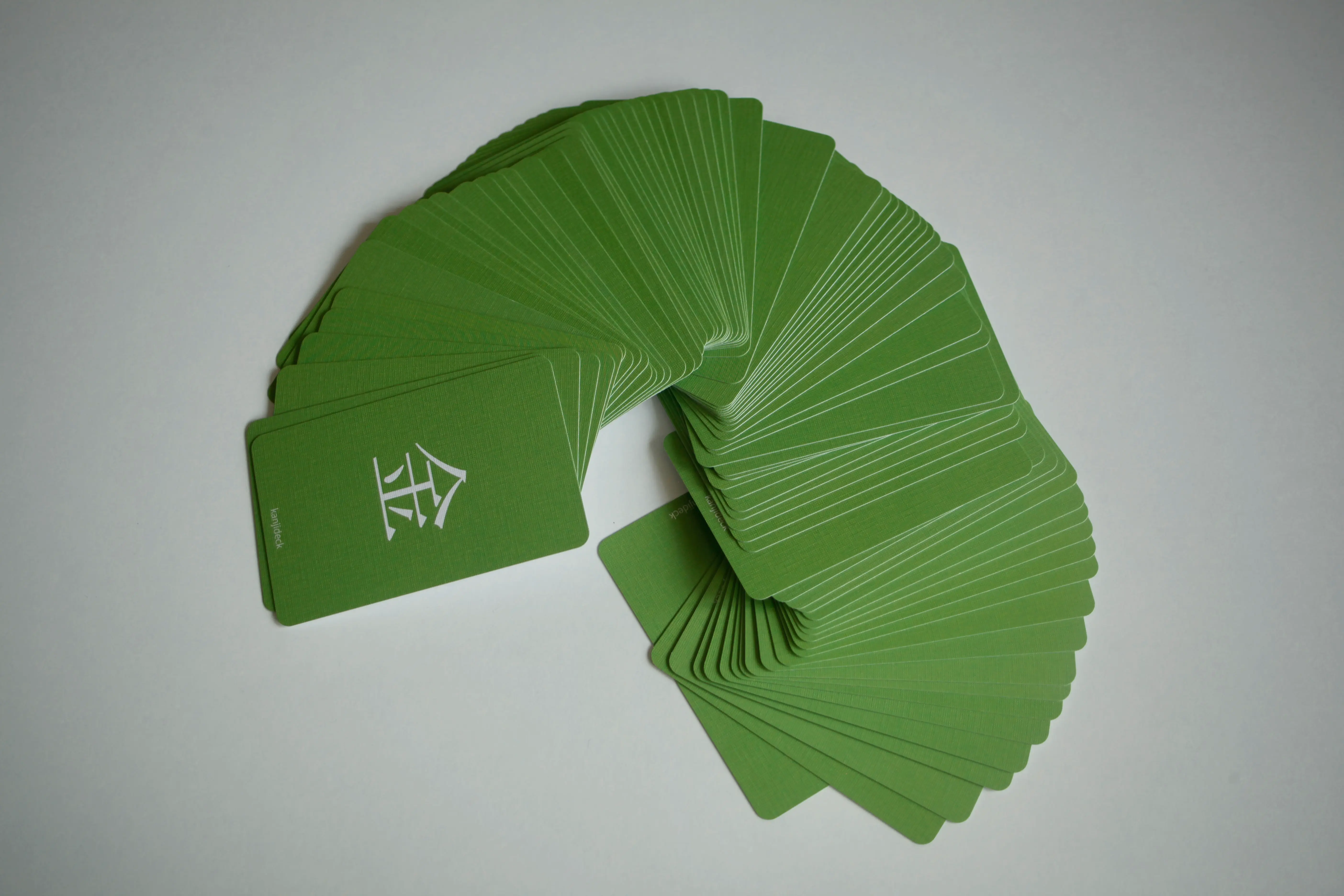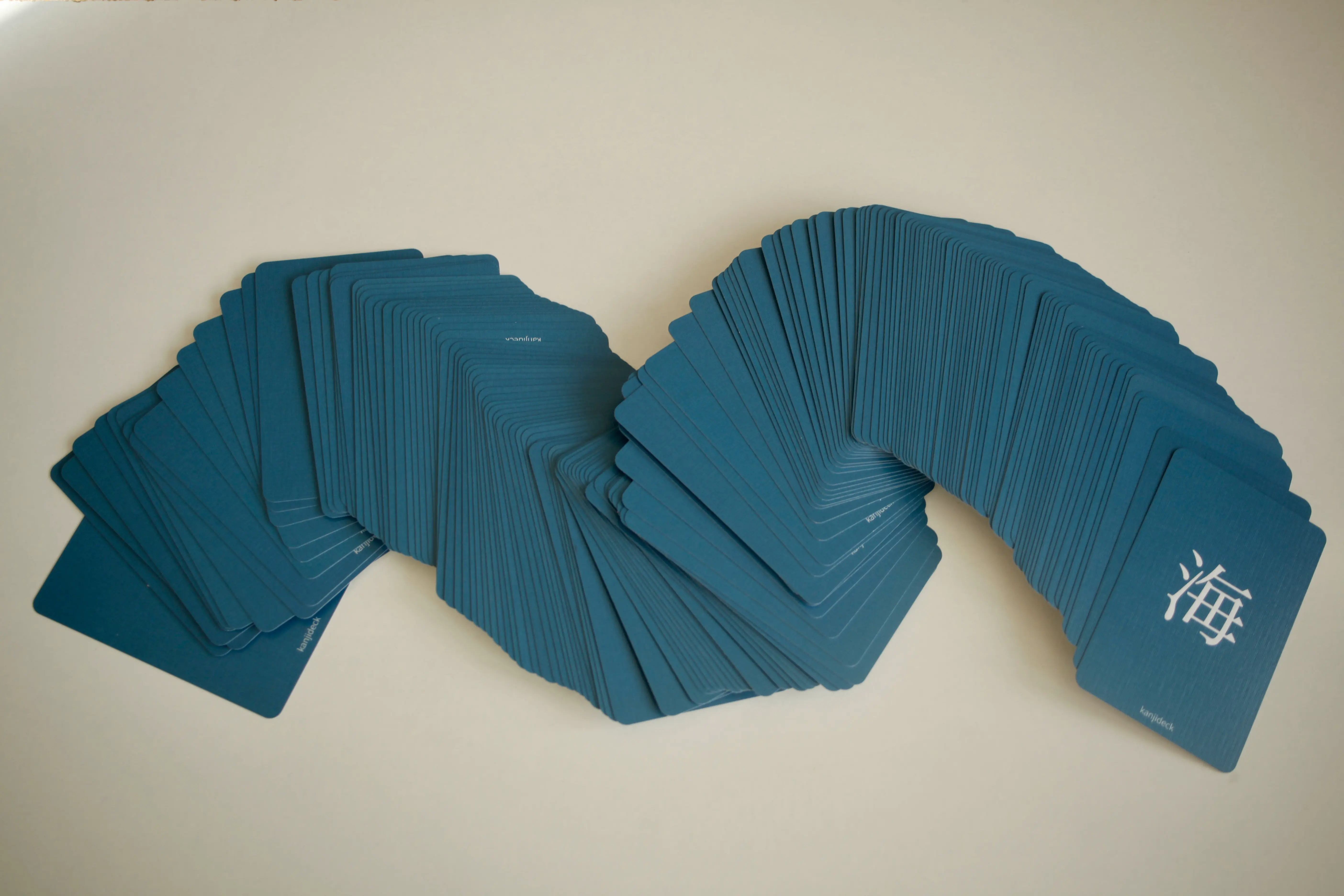The standard green Kanji deck has in total 90 physical cards to help you learn all first 80 Kanji characters commonly needed for the first level of the official Japanese language proficiency test (JLPT-5).